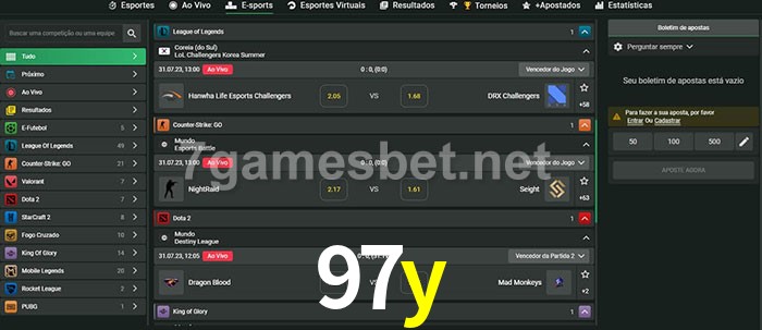 O 97y oferece uma grande seleção de opções de apostas em e-sports com probabilidades competitivas